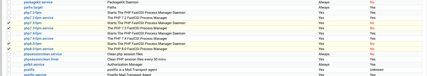 In my case, I just don’t need to run Dovecot and SpamAssassin so using the same method I turn them off.